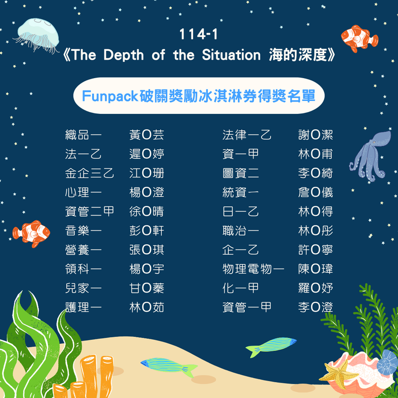 備註:每篇貼文活動時間約一周,114-1學期間最後一篇文章預計12/10(三)發佈,之後將於寒假開始後繼續發佈。